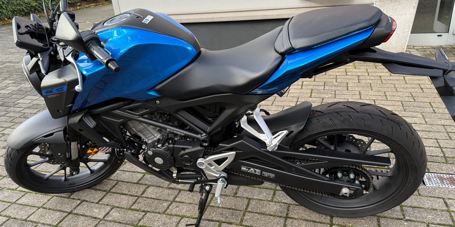 Die CB125R sieht nicht nur gut aus, sondern fährt dank ihrer geballten Leistung auch so gut. Das schlanke und minimalistische Design sorgt für einen unverwechselbaren Look, der das Bike von der Masse abhebt. Die einfache Handhabung und die ausgefeilte Technik sorgen für eine präzise Steuerung, die perfekt für neue A1- oder B196-Führerscheininhaber ist.