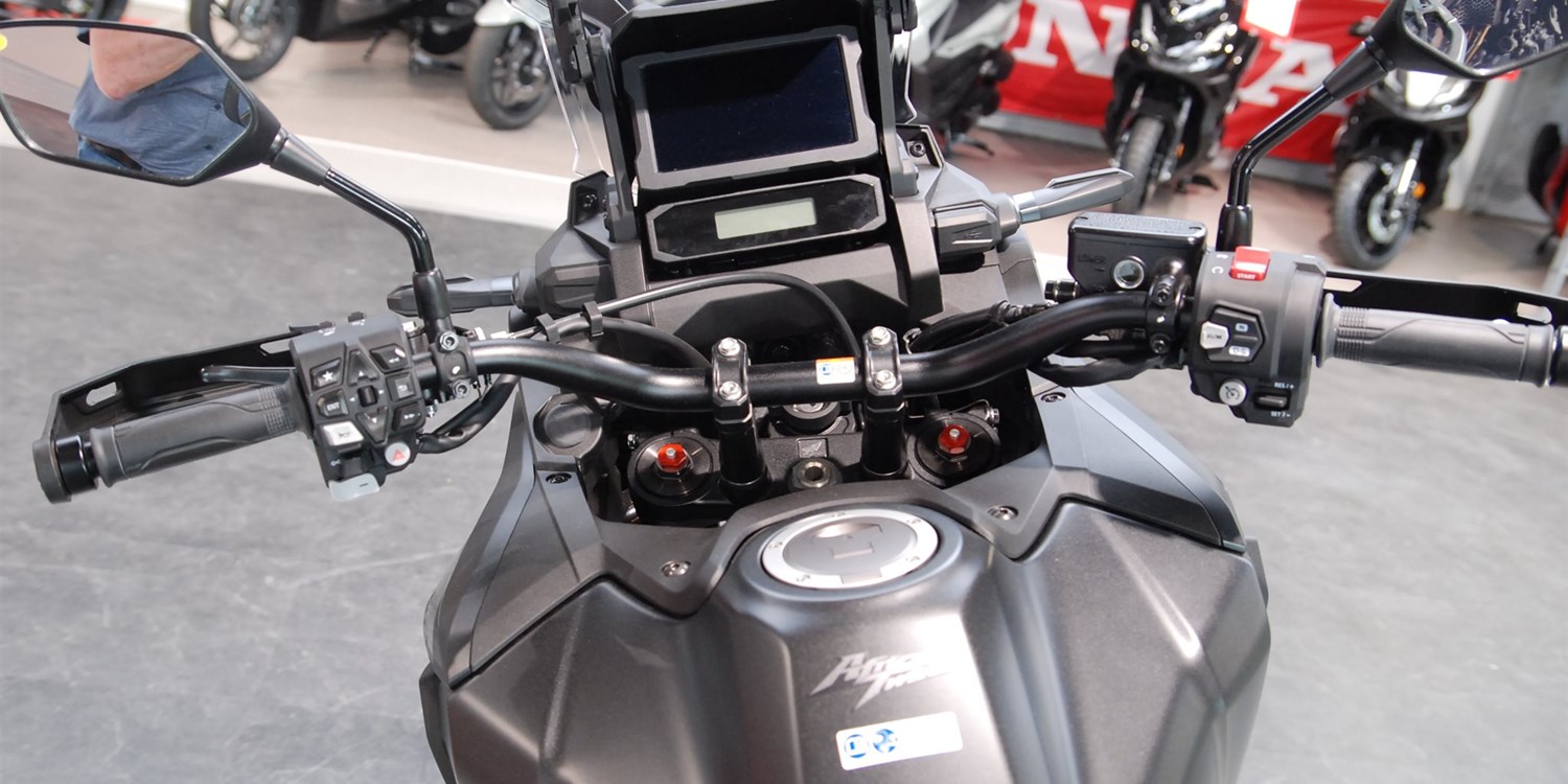 Dieses Motorrad ist für lange Strecken ausgelegt und sämtliche Updates stehen ganz in diesem Zeichen. Die elektrisch einstellbare Showa-EERA-Aufhängung sorgt für eine perfekte Dämpfungsabstimmung. Die Modi lassen sich während der Fahrt wechseln genau wie die Federvorspannung. Das 19-Zoll-Vorderrad sorgt für mehr Grip an der Front und einen niedrigeren Schwerpunkt. Die niedrigere Sitzhöhe lässt sich werkzeuglos zwischen 835 und 855 mm einstellen. Die Sitzbank selbst ist jetzt dicker und 8 % größer. Damit ist sie komfortabel genug, um die Reichweite voll auszukosten, die der 24,8 Liter fassende Tank ermöglicht. Hinzu kommen das in fünf Stufen höhenverstellbare Windschild, die Griffheizung, praktische ACC- und USB-Anschlüsse sowie die umfassende Konnektivität für den Zugriff auf die Navigations-Apps deines Smartphone