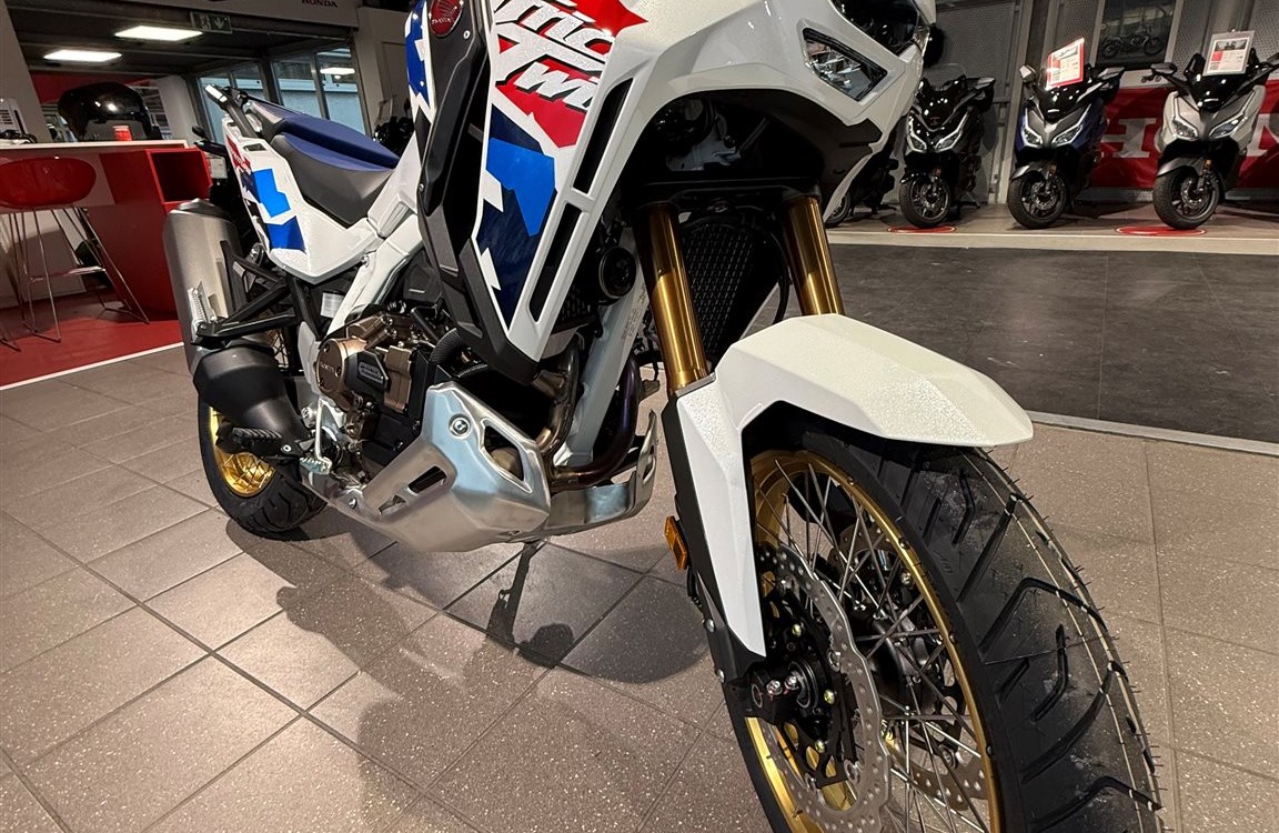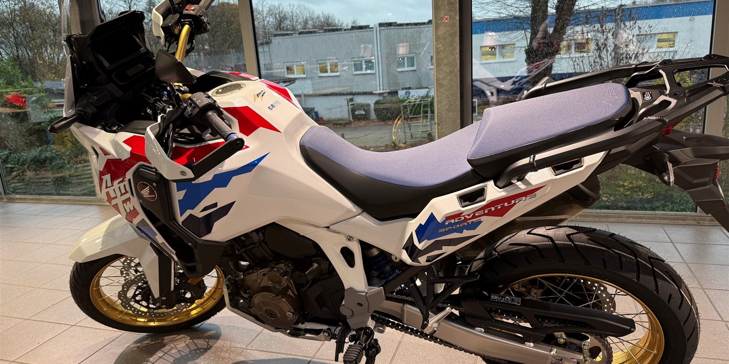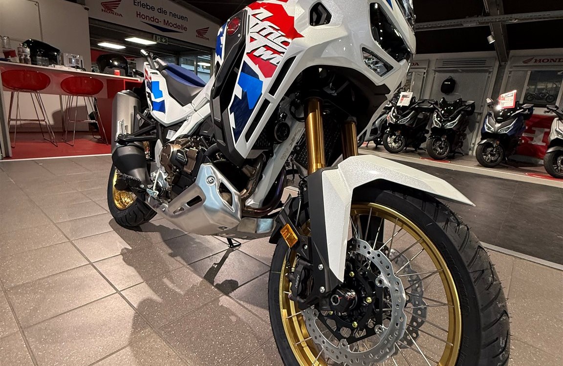 Die neue Africa Twin Adventure Sports ES ist eine ganz besondere Maschine. Sie zeichnet sich durch ein höheres Drehmoment im mittleren Drehzahlbereich für eine starke Beschleunigung bei Überholvorgängen aus. Das 19-Zoll-Vorderrad mit einem 110/80-19-Reifen, die niedrigere Sitzhöhe und die elektrisch einstellbare Showa-EERA-Aufhängung sorgen für optimales Handling auf der Straße. Die neue Verkleidung und eine neues Windschild bieten jederzeit perfekten Windschutz, sodass du bei langen Touren den 24,8 Liter fassenden Tank voll auskosten kannst. Genau dafür haben wir dieses Motorrad gebaut.