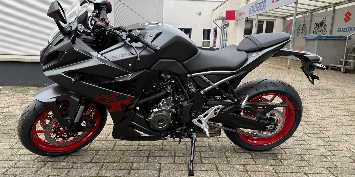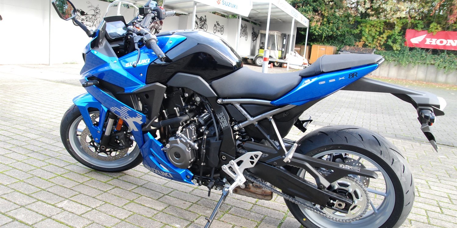 Seit über 35 Jahren steht Suzuki R für Innovation und Spitzenleistung. Die neue GSX-8R besticht durch ihr messerscharfes Design und einen der besten Parallel-Twins seiner Art. Das Fahrwerk setzt neue Maßstäbe und lädt sowohl zu sportlichen Sprints auf der Rennstrecke als auch zu komfortablen Fahrten im Alltag ein. Auch auf 35 kW umrüstbar.