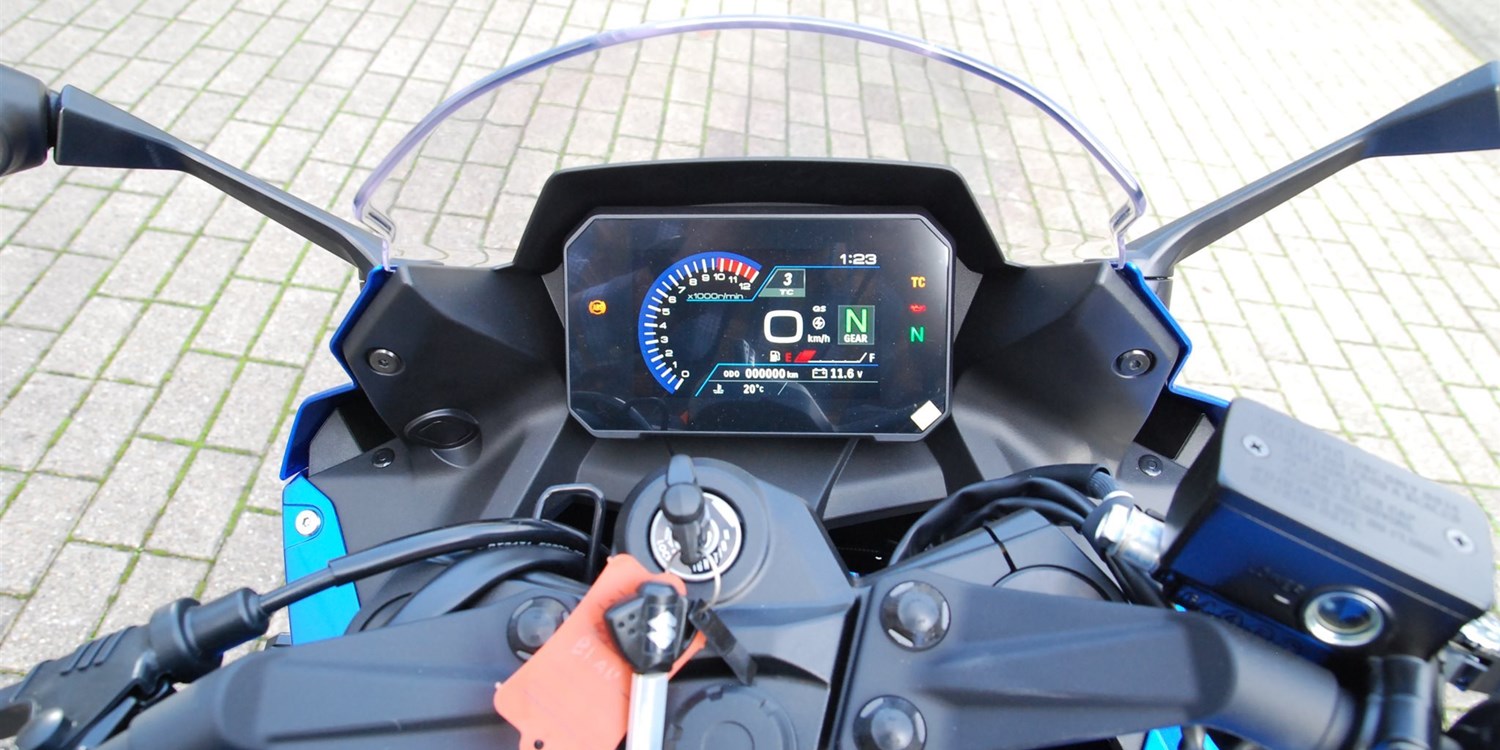 Stell dir ein R-Cockpit vor, das all deine Erwartungen übertrifft: Der Lenker liegt perfekt in der Hand, die sportliche Sitzposition passt ideal und das vollfarbige 5" TFT-Display liefert dir alle technischen Informationen klar und übersichtlich. Klar, übersichtlich und mit einem programmierbaren Schaltblitz als Highlight.