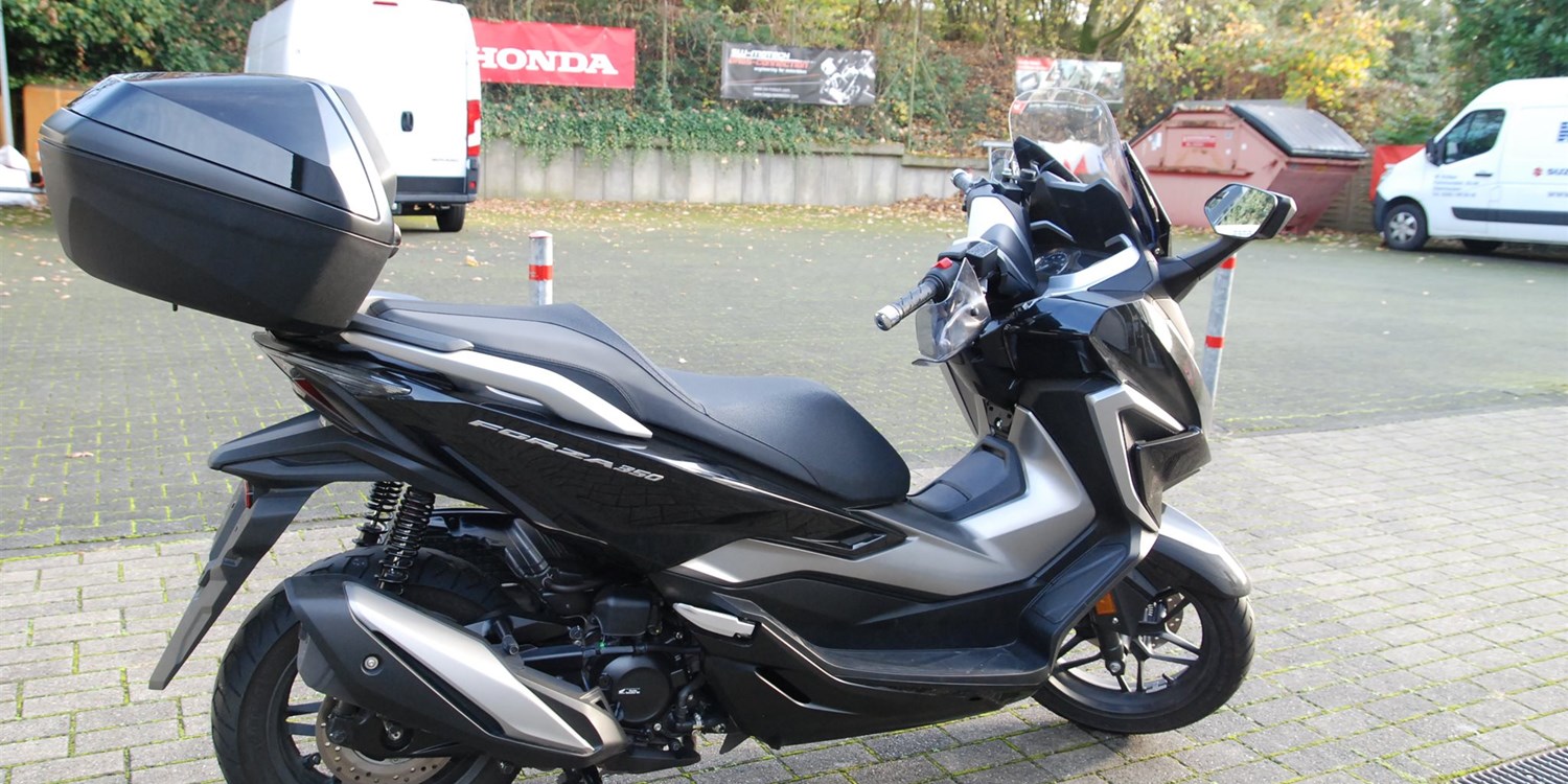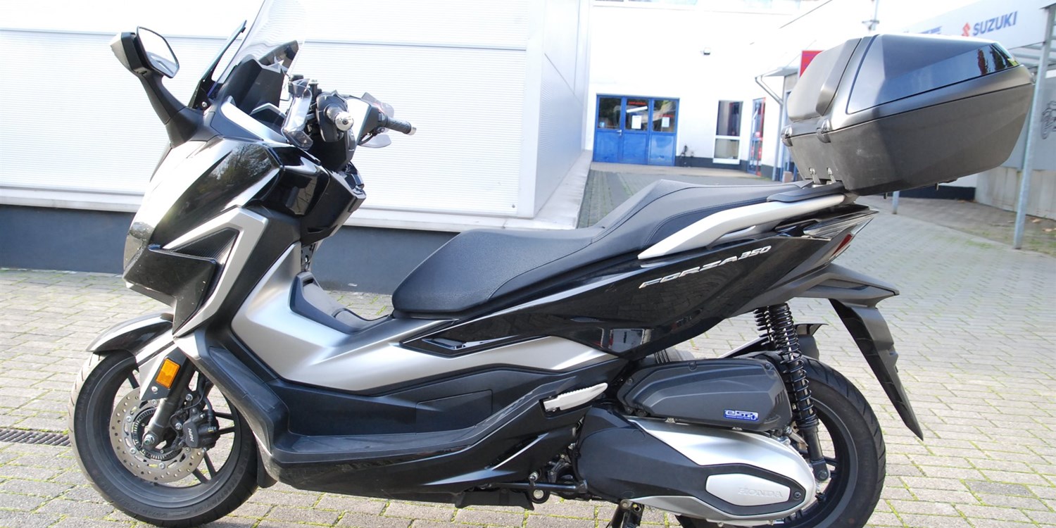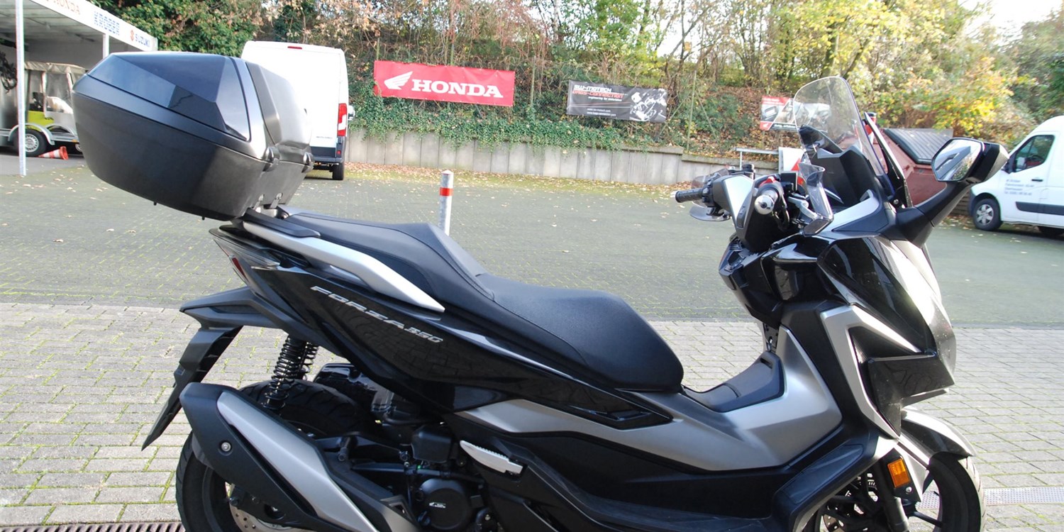 Der Forza 350 ist ein echter Sport-GT-Roller mit kraftvoller Motorleistung, HSTC für sicheres Fahren und exzellenter Kraftstoffeffizienz und das alles in einem schlanken Design mit großzügigem Stauraum unter dem Sitz. Mit dem 5-Zoll TFT-Display und der Honda RoadSync-Integration bleibst du den ganzen Tag über in Verbindung und hast während der Fahrt nahtlosen Zugang zu Anrufen, Musik und Navigation.