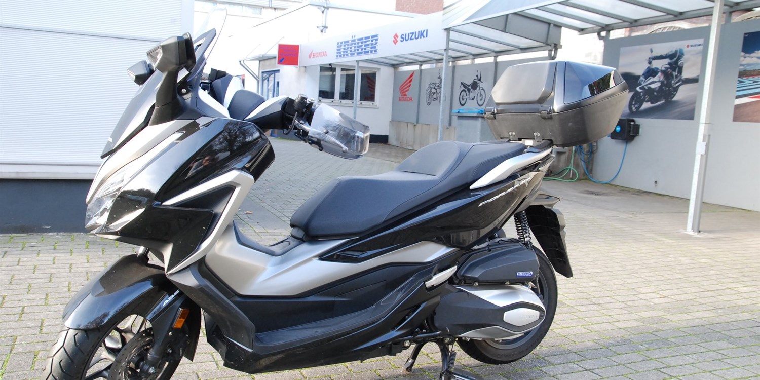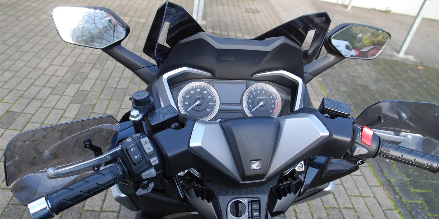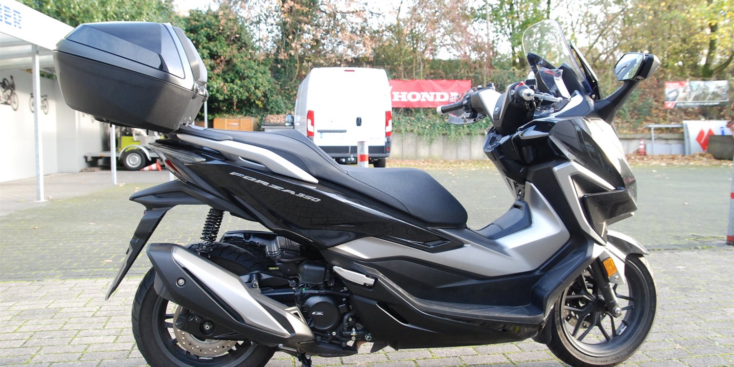 Der Forza 350 ist ein echter Sport-GT-Roller mit kraftvoller Motorleistung, HSTC für sicheres Fahren und exzellenter Kraftstoffeffizienz und das alles in einem schlanken Design mit großzügigem Stauraum unter dem Sitz. Mit dem 5-Zoll TFT-Display und der Honda RoadSync-Integration bleibst du den ganzen Tag über in Verbindung und hast während der Fahrt nahtlosen Zugang zu Anrufen, Musik und Navigation.