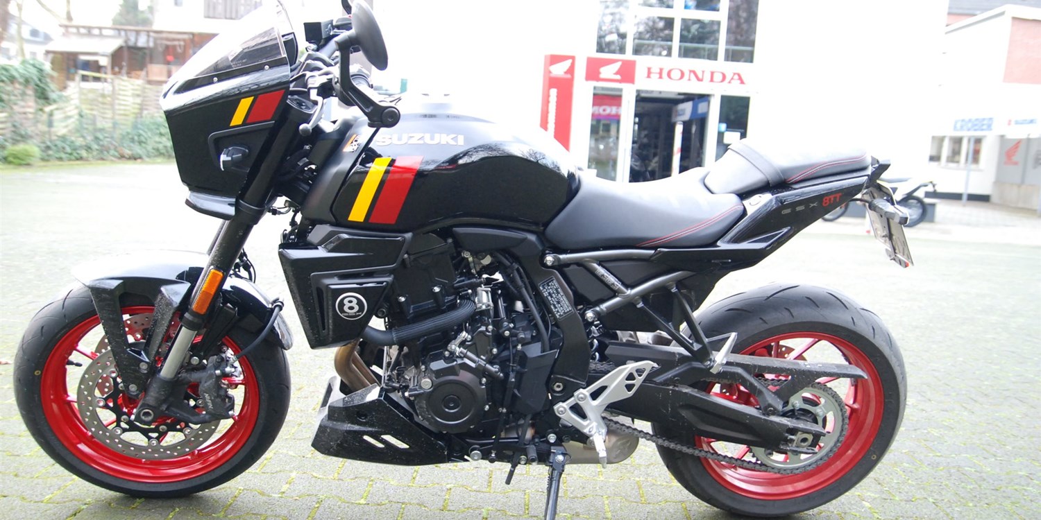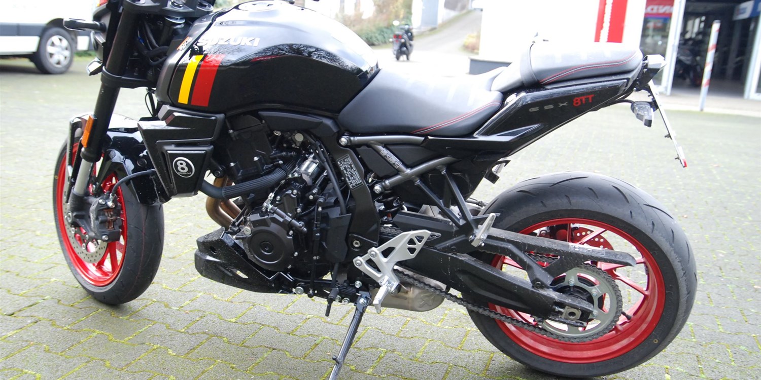 So stark im Look, dass man gerne schwach wird. Die GSX-8TT brilliert aber nicht nur optisch, sondern da, wo es wirklich darauf ankommt: mit dem top-getesteten Parallel-Twin-Motor, dem einfühlsamen Fahrwerk mit KYB-Gabel und Leichtmetall-Schwinge, mit allem, was dir Spaß macht.