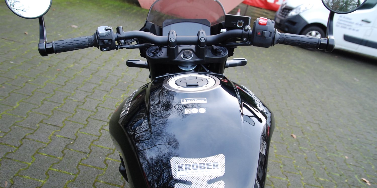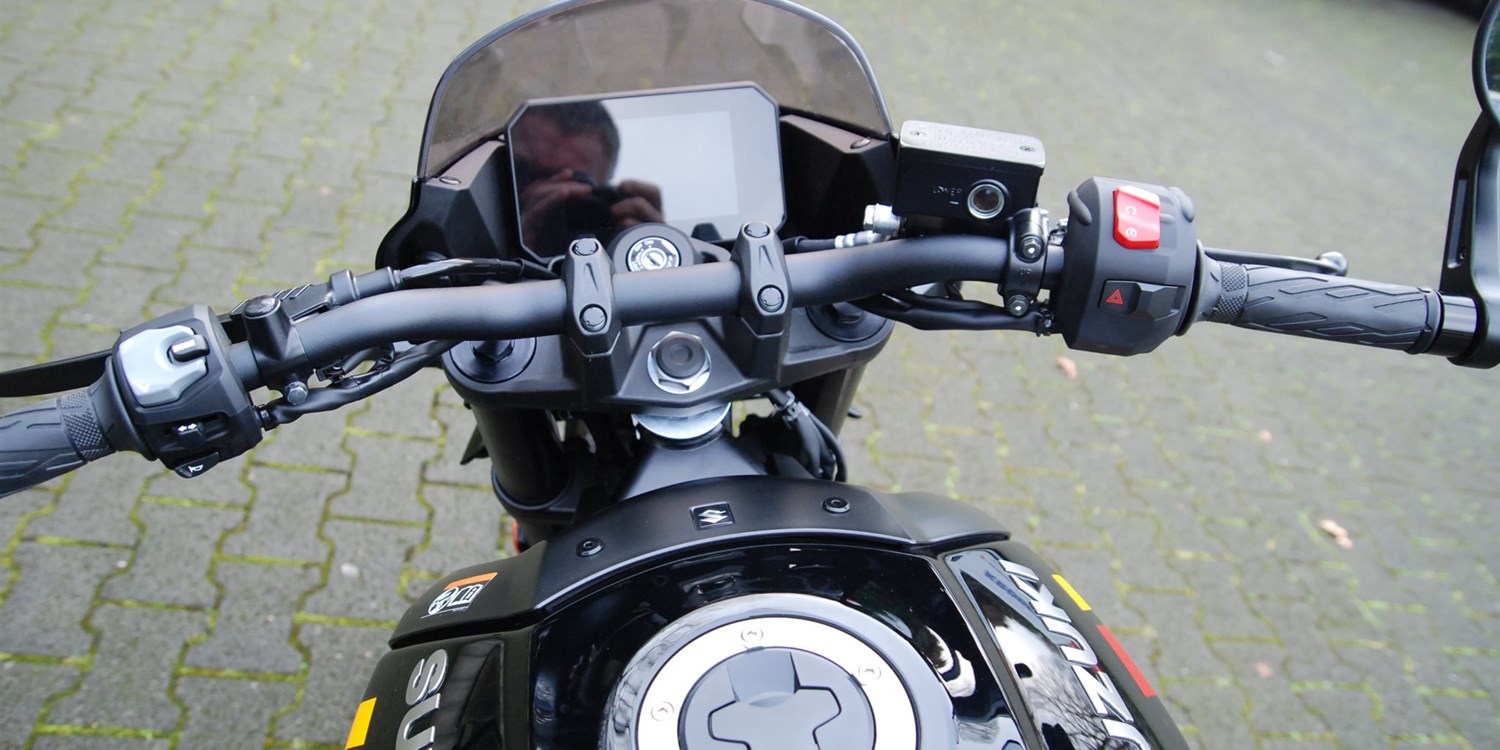 Sieh mal an: Zum ersten Mal serienmäßig trägt eine Suzuki am Lenkerende montierte Spiegel. Sie integrieren sich perfekt in den Look der GSX-8TT, werden dich aber auch funktional überzeugen. Durch ihre