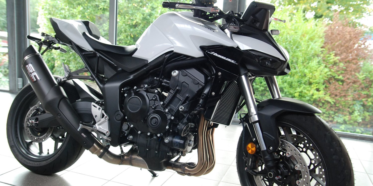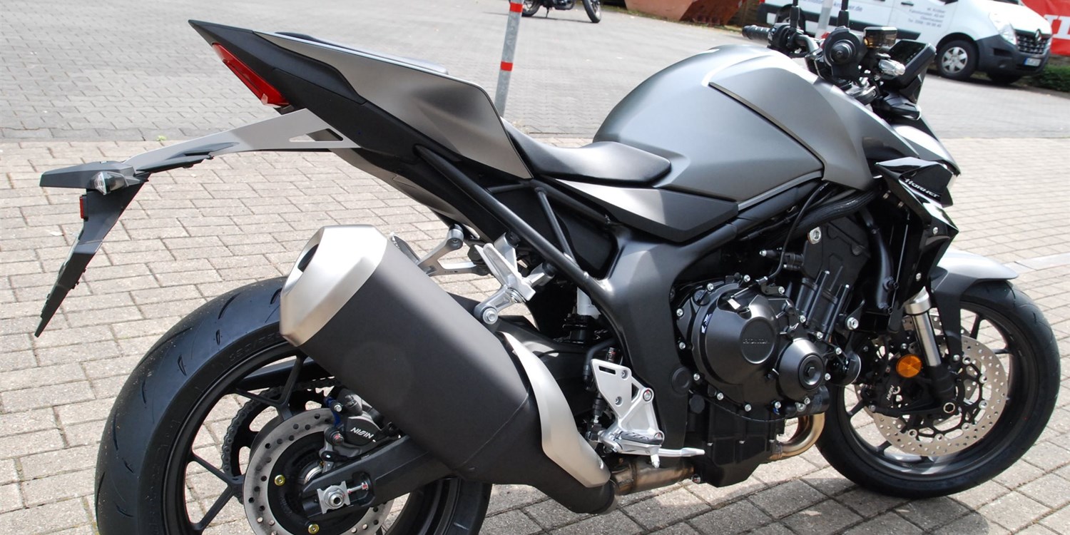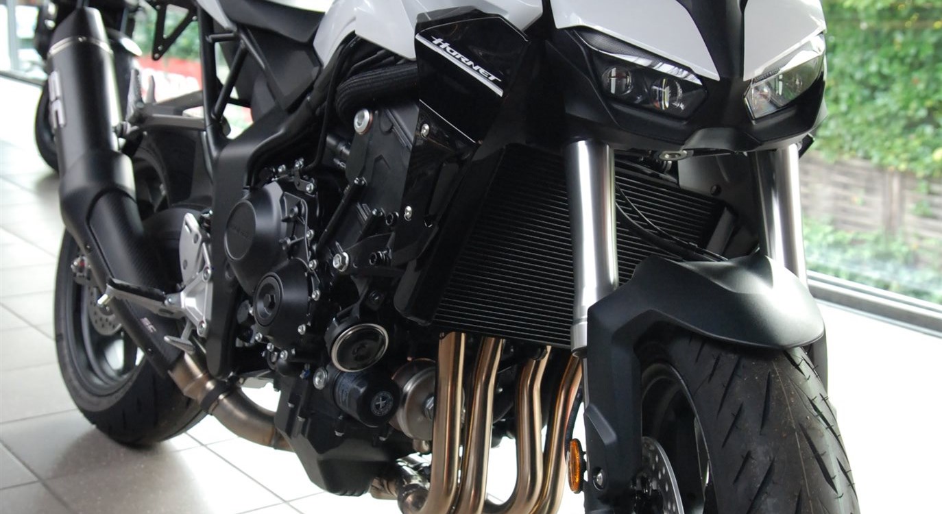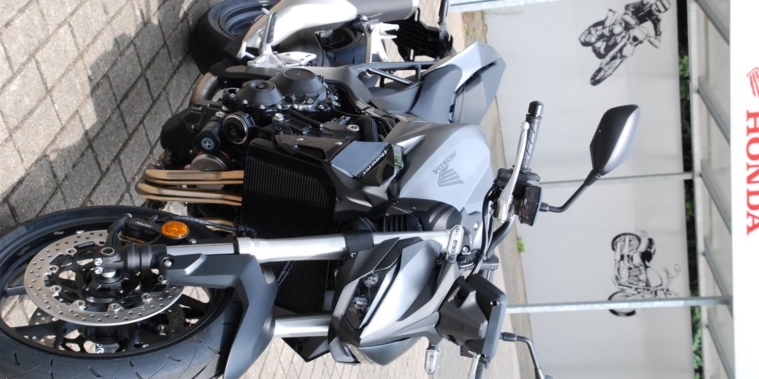 Es hat einen unglaublichen Motor. Und das Äußere einer waschechten Streetfighter-Maschine. Die CB1000 Hornet bietet jedoch auch ein einzigartiges Handling. Vom Großstadtdschungel zur kurvenreichen Landstraße. Der einteilige Stahl-Brückenrahmen verlagert aufgrund seiner Geometrie das Gewicht nach vorn auf das Vorderrad und erhöht die Torsionssteifigkeit um 70 %, was für einen agilen Kurveneingang und ein dynamisches Lenkverhalten sorgt. Außerdem ist ein Showa-Federbein montiert, das über Pro-Link für perfekte Federungskontrolle sorgt. Dazu kommt die Lenkpräzision der einstellbaren SHOWA SFF-BP Upside-Down-Gabel mit 41 mm Durchmesser. Die radial montierten Vielkolbenbremszangen von Nissin an der Vorderradbremse mit 310 mm großen, schwimmend gelagerten Bremsscheiben sorgen für eine starke Bremsleistung. Dank des breiten Lenkers und der Fahrposition verschmilzt du mit dem Motorrad.