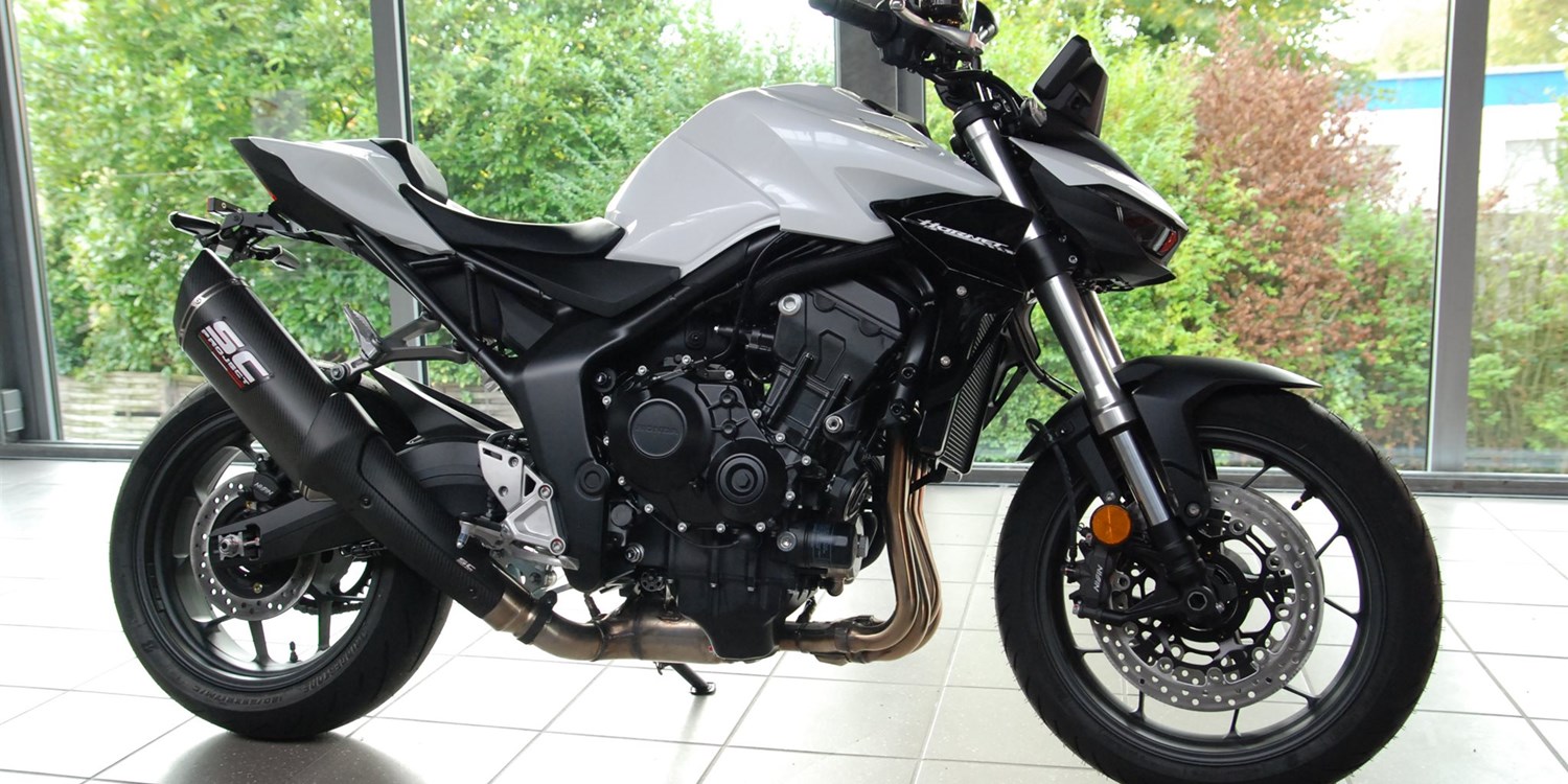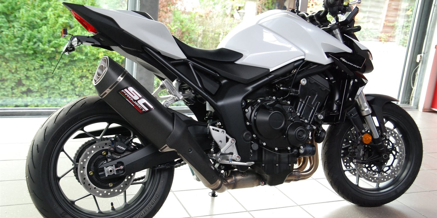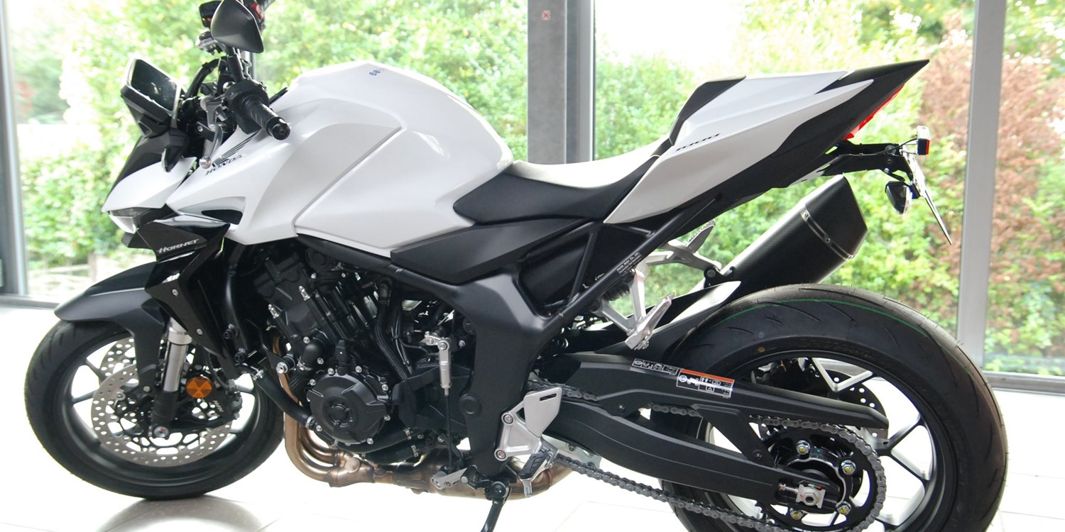Es hat einen unglaublichen Motor. Und das Äußere einer waschechten Streetfighter-Maschine. Die CB1000 Hornet bietet jedoch auch ein einzigartiges Handling. Vom Großstadtdschungel zur kurvenreichen Landstraße. Der einteilige Stahl-Brückenrahmen verlagert aufgrund seiner Geometrie das Gewicht nach vorn auf das Vorderrad und erhöht die Torsionssteifigkeit um 70 %, was für einen agilen Kurveneingang und ein dynamisches Lenkverhalten sorgt. Außerdem ist ein Showa-Federbein montiert, das über Pro-Link für perfekte Federungskontrolle sorgt. Dazu kommt die Lenkpräzision der einstellbaren SHOWA SFF-BP Upside-Down-Gabel mit 41 mm Durchmesser. Die radial montierten Vielkolbenbremszangen von Nissin an der Vorderradbremse mit 310 mm großen, schwimmend gelagerten Bremsscheiben sorgen für eine starke Bremsleistung. Dank des breiten Lenkers und der Fahrposition verschmilzt du mit dem Motorrad.