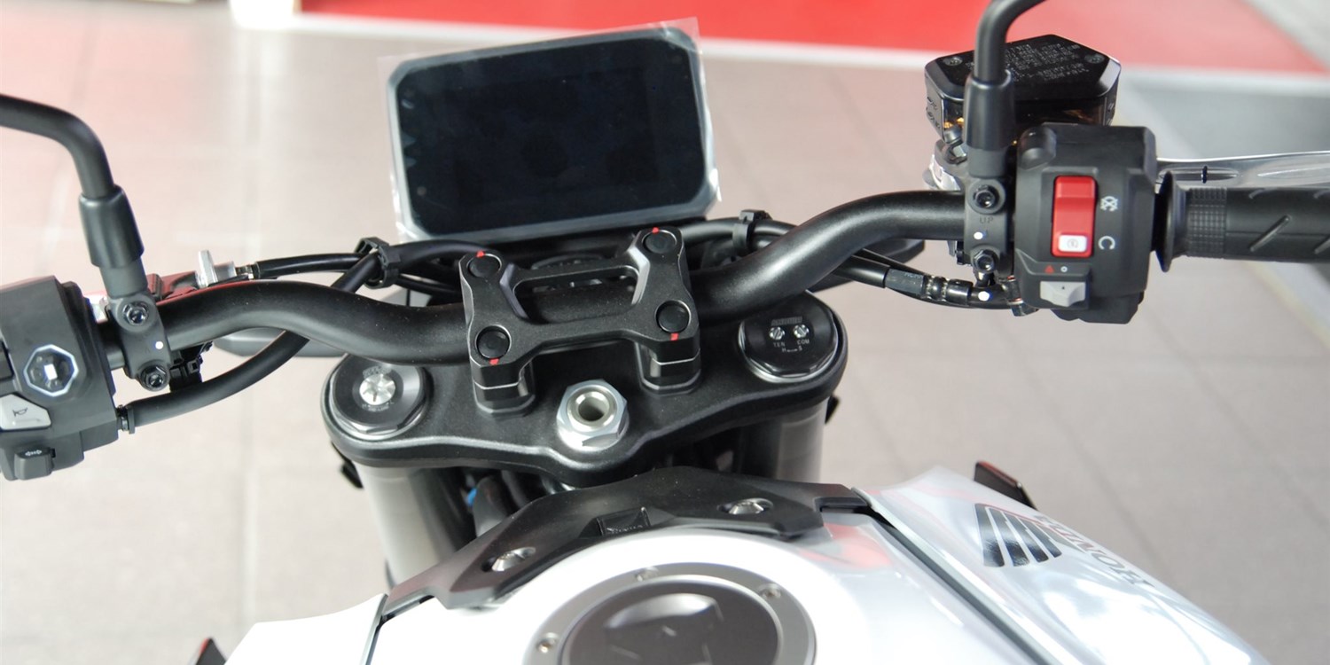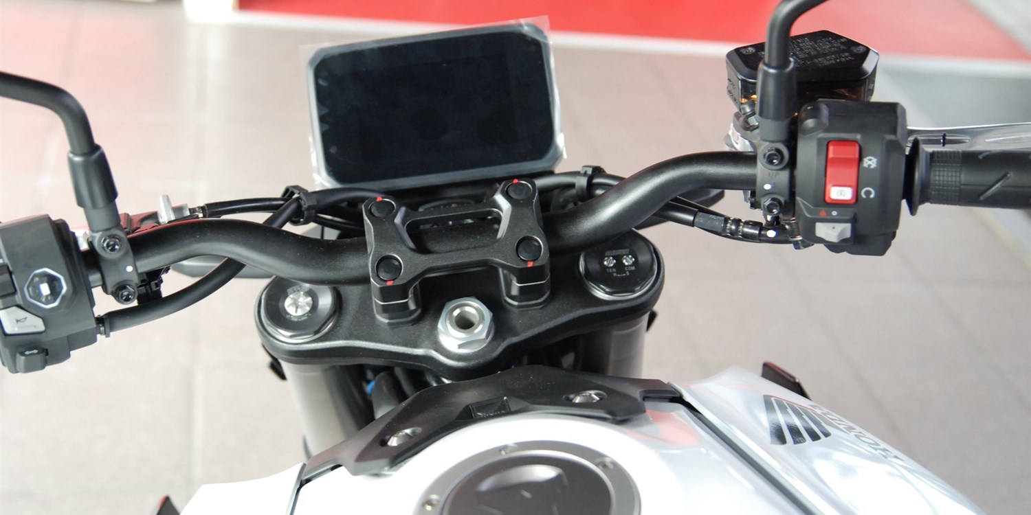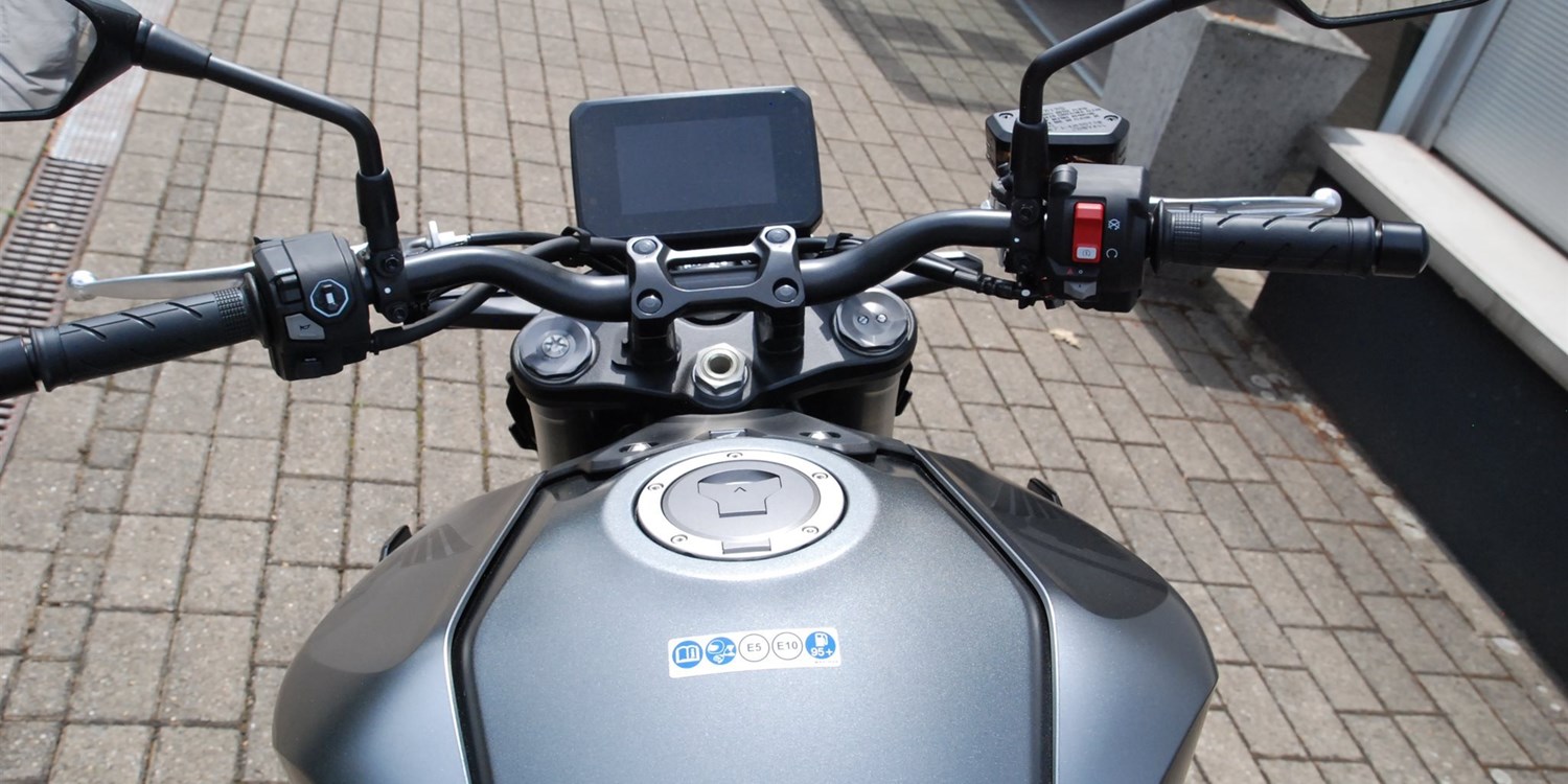 Die CB1000 Hornet bietet das komplette Paket. Dank der elektronisch gesteuerten Drosselklappe steht dir die gesamte atemberaubende Leistung des Motors mit nur einer Drehung am Gasgriff zur Verfügung. Du hast die Kontrolle. Und das 5-Zoll-TFT-Farbdisplay ermöglicht eine intuitive Modusauswahl über einen einfachen 4-Wege-Schalter am Lenker. Du kannst zwischen den voreingestellten Fahrmodi Regen, Standard und Sport und zwei Benutzermodi wählen, die sich in drei Stufen für Motorleistung/Motorbremse und vier Stufen für die Honda Traktionskontrolle (HSTC) sowie Wheelie-Control individuell konfigurieren lassen. Das Display bietet außerdem über die Honda RoadSync-Konnektivität Schritt-für-Schritt-Navigation und jede Menge weitere Features deines Smartphones.