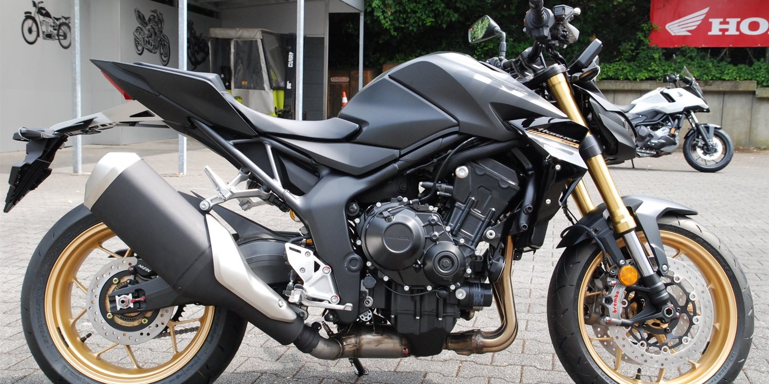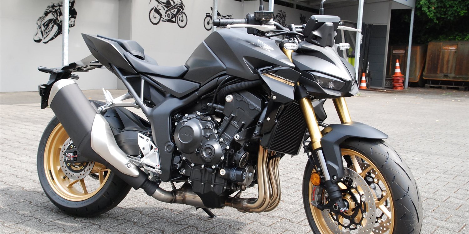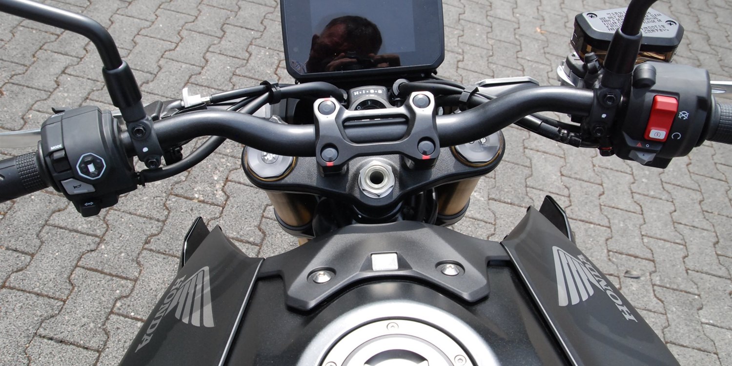 Die CB1000 Hornet bietet das komplette Paket. Dank der elektronisch gesteuerten Drosselklappe steht dir die gesamte atemberaubende Leistung des Motors mit nur einer Drehung am Gasgriff zur Verfügung. Du hast die Kontrolle. Und das 5-Zoll-TFT-Farbdisplay ermöglicht eine intuitive Modusauswahl über einen einfachen 4-Wege-Schalter am Lenker. Du kannst zwischen den voreingestellten Fahrmodi Regen, Standard und Sport und zwei Benutzermodi wählen, die sich in drei Stufen für Motorleistung/Motorbremse und vier Stufen für die Honda Traktionskontrolle (HSTC) sowie Wheelie-Control individuell konfigurieren lassen. Das Display bietet außerdem über die Honda RoadSync-Konnektivität Schritt-für-Schritt-Navigation und jede Menge weitere Features deines Smartphones.