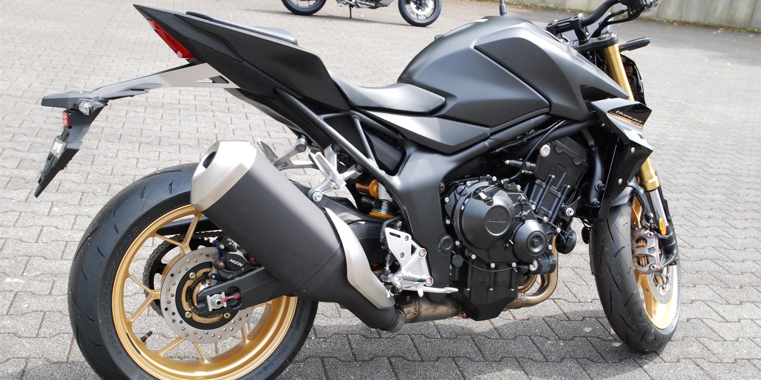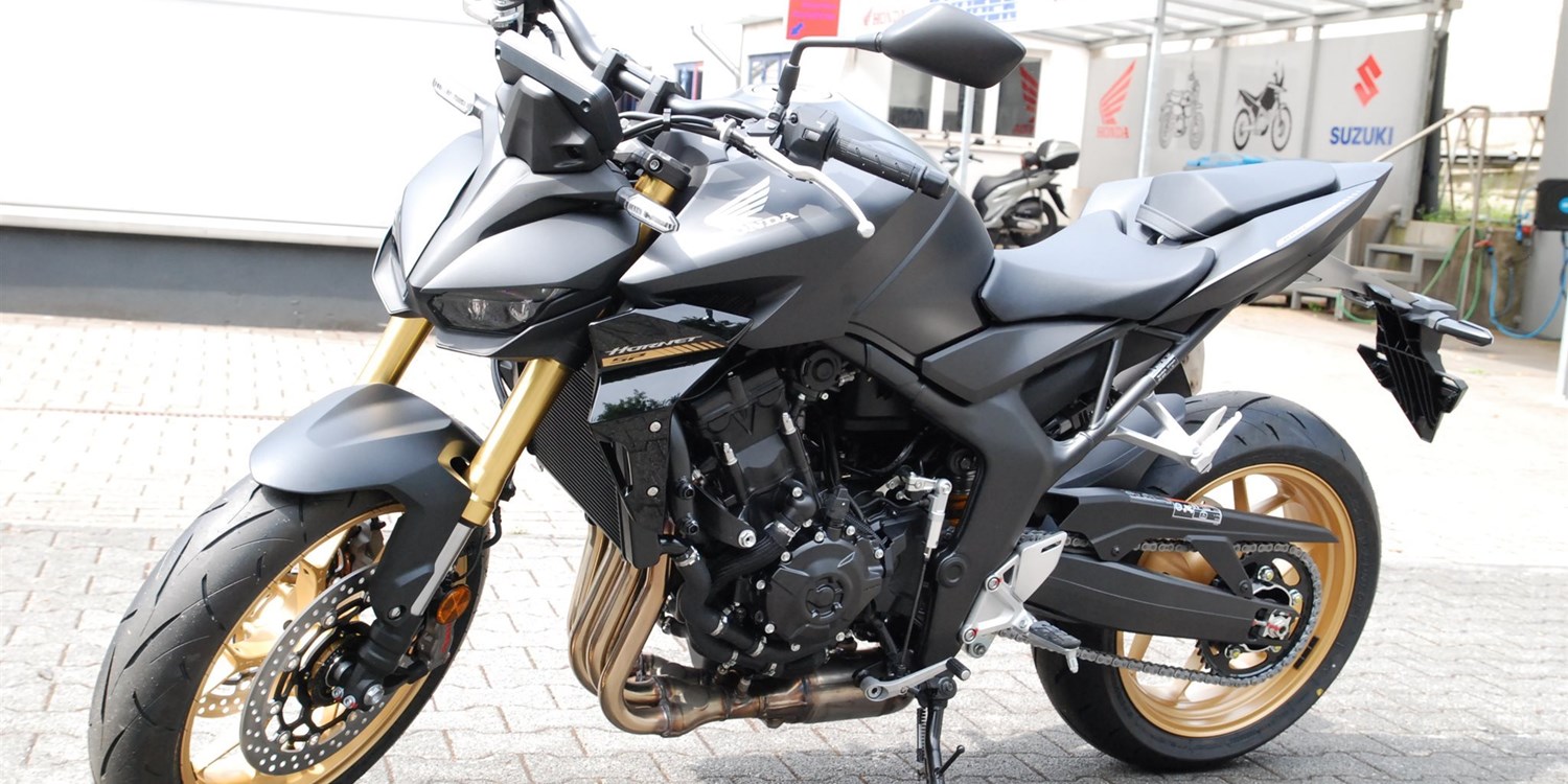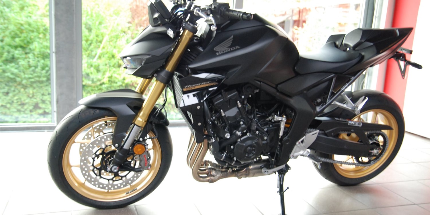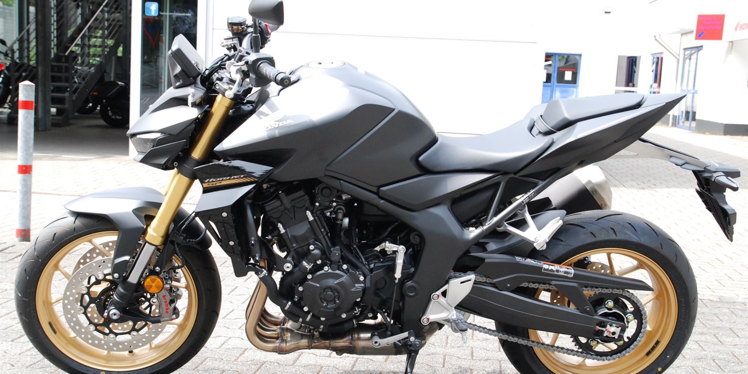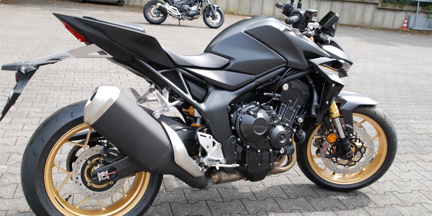 Es hat einen unglaublichen Motor. Und das Äußere einer waschechten Streetfighter-Maschine. Die CB1000 Hornet bietet jedoch auch ein einzigartiges Handling. Vom Großstadtdschungel zur kurvenreichen Landstraße. Der einteilige Stahl-Brückenrahmen verlagert aufgrund seiner Geometrie das Gewicht nach vorn auf das Vorderrad und erhöht die Torsionssteifigkeit um 70 %, was für einen agilen Kurveneingang und ein dynamisches Lenkverhalten sorgt. Außerdem ist ein Showa-Federbein montiert, das über Pro-Link für perfekte Federungskontrolle sorgt. Dazu kommt die Lenkpräzision der einstellbaren SHOWA SFF-BP Upside-Down-Gabel mit 41 mm Durchmesser. Die radial montierten Vielkolbenbremszangen von Nissin an der Vorderradbremse mit 310 mm großen, schwimmend gelagerten Bremsscheiben sorgen für eine starke Bremsleistung. Dank des breiten Lenkers und der Fahrposition verschmilzt du mit dem Motorrad.