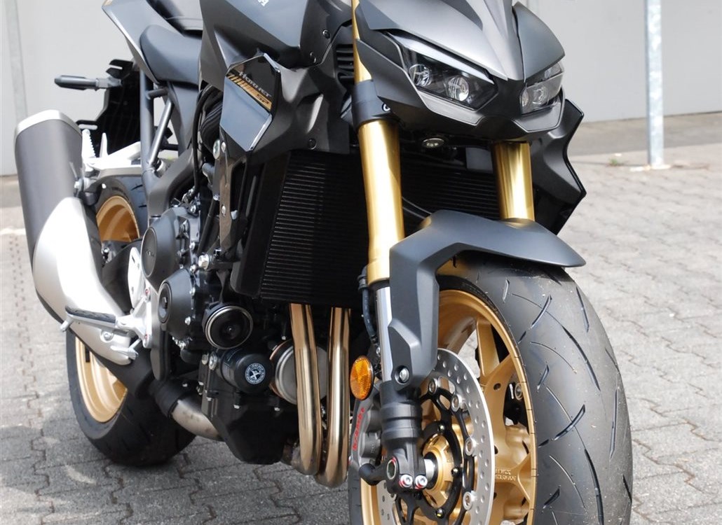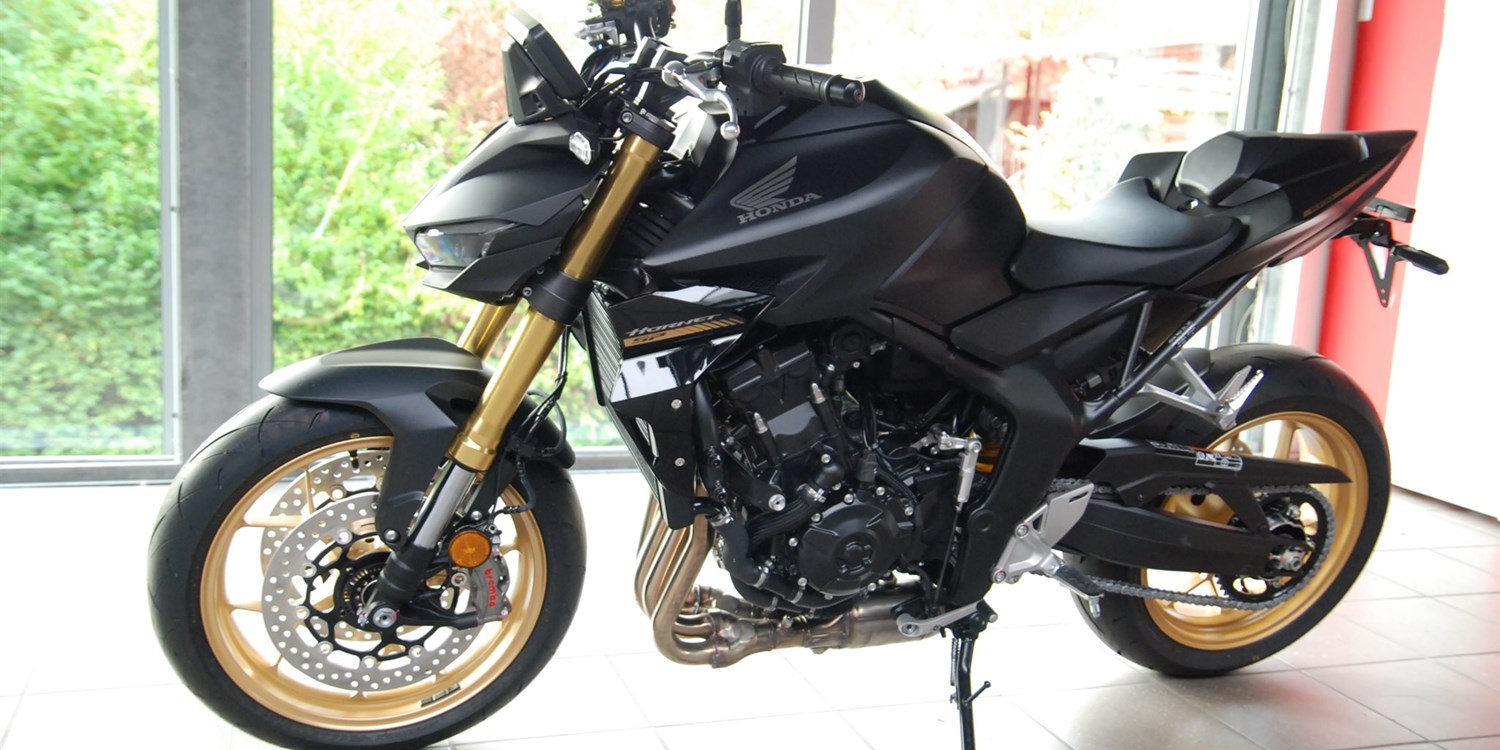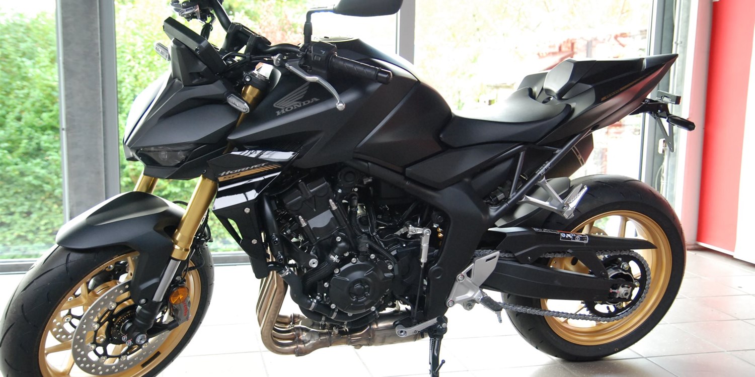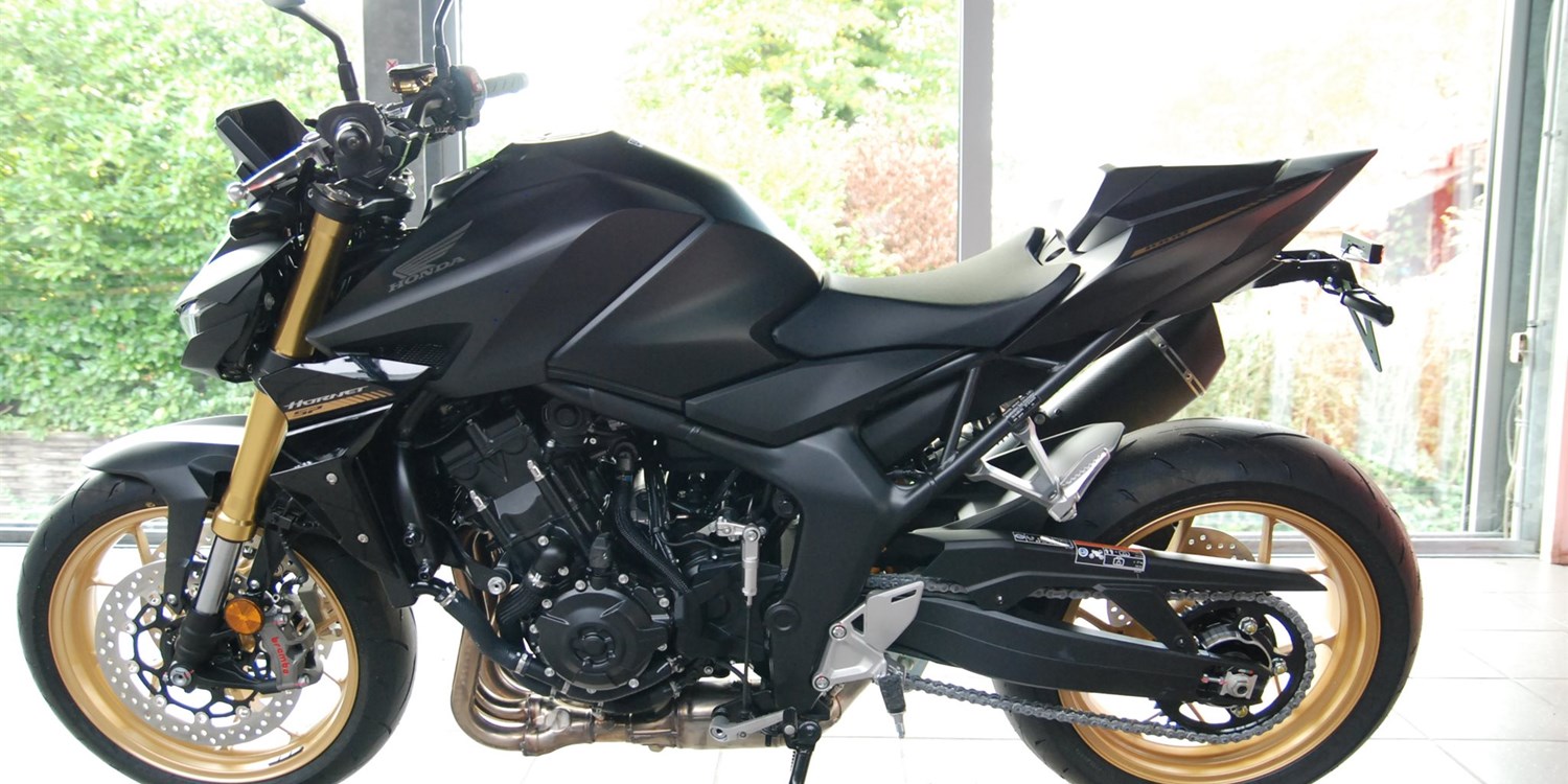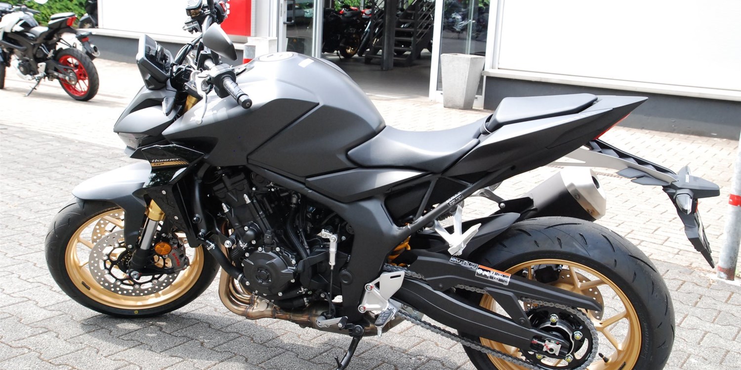 Es hat einen unglaublichen Motor. Und das Äußere einer waschechten Streetfighter-Maschine. Die CB1000 Hornet bietet jedoch auch ein einzigartiges Handling. Vom Großstadtdschungel zur kurvenreichen Landstraße. Der einteilige Stahl-Brückenrahmen verlagert aufgrund seiner Geometrie das Gewicht nach vorn auf das Vorderrad und erhöht die Torsionssteifigkeit um 70 %, was für einen agilen Kurveneingang und ein dynamisches Lenkverhalten sorgt. Außerdem ist ein Showa-Federbein montiert, das über Pro-Link für perfekte Federungskontrolle sorgt. Dazu kommt die Lenkpräzision der einstellbaren SHOWA SFF-BP Upside-Down-Gabel mit 41 mm Durchmesser. Die radial montierten Vielkolbenbremszangen von Nissin an der Vorderradbremse mit 310 mm großen, schwimmend gelagerten Bremsscheiben sorgen für eine starke Bremsleistung. Dank des breiten Lenkers und der Fahrposition verschmilzt du mit dem Motorrad.