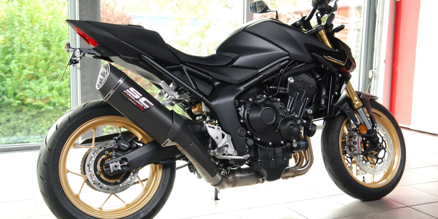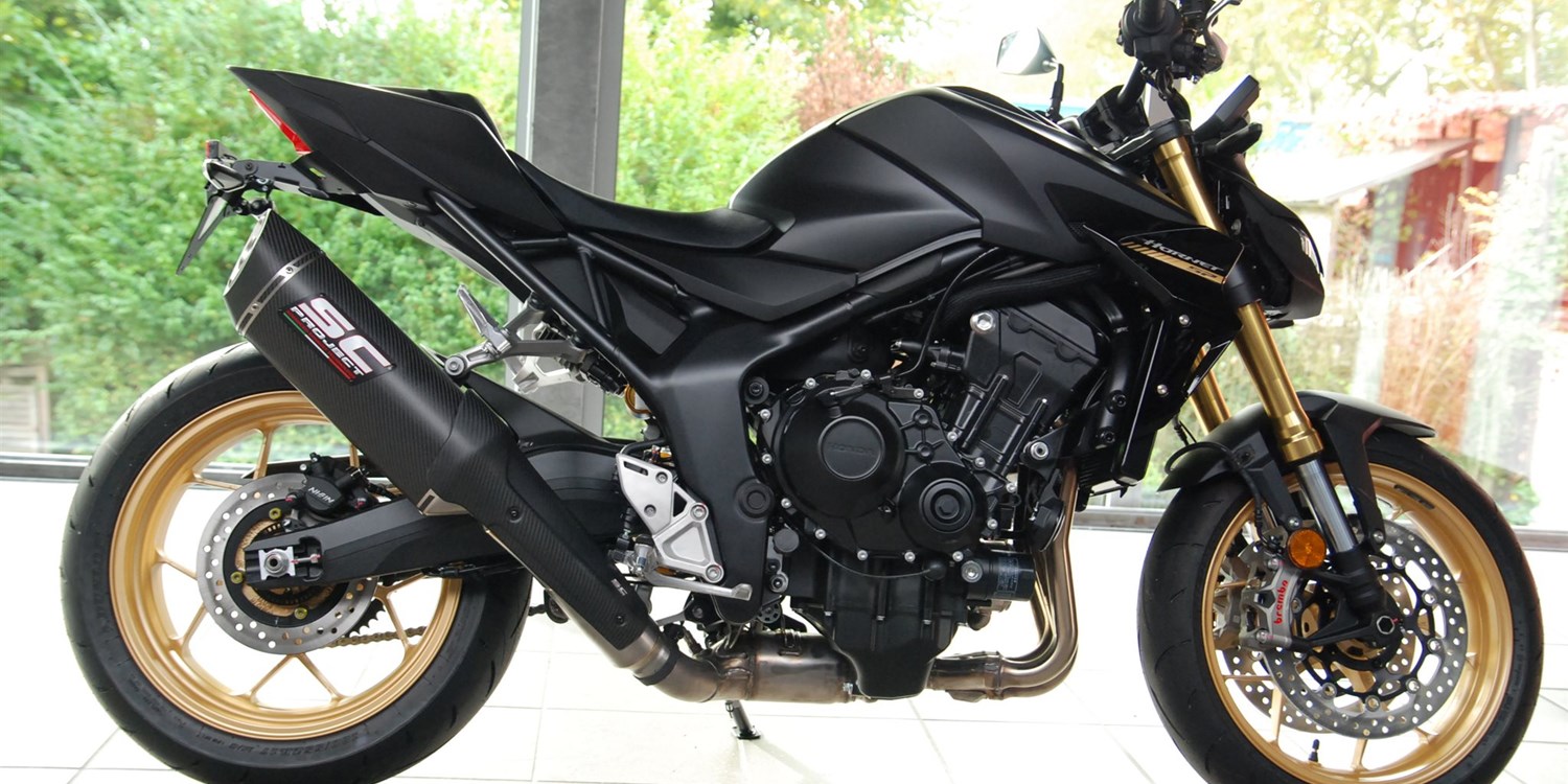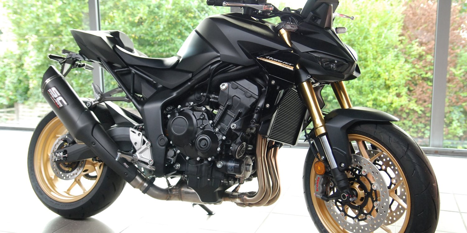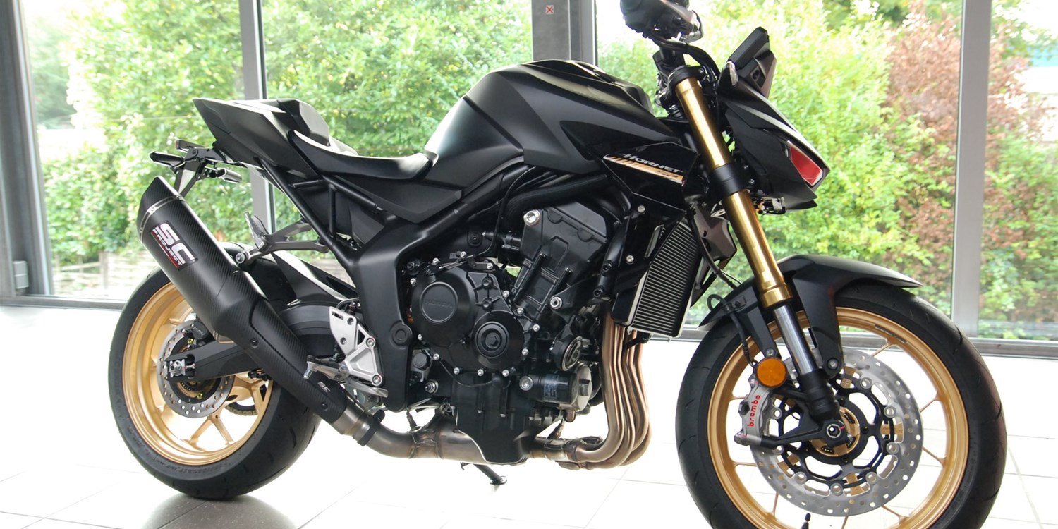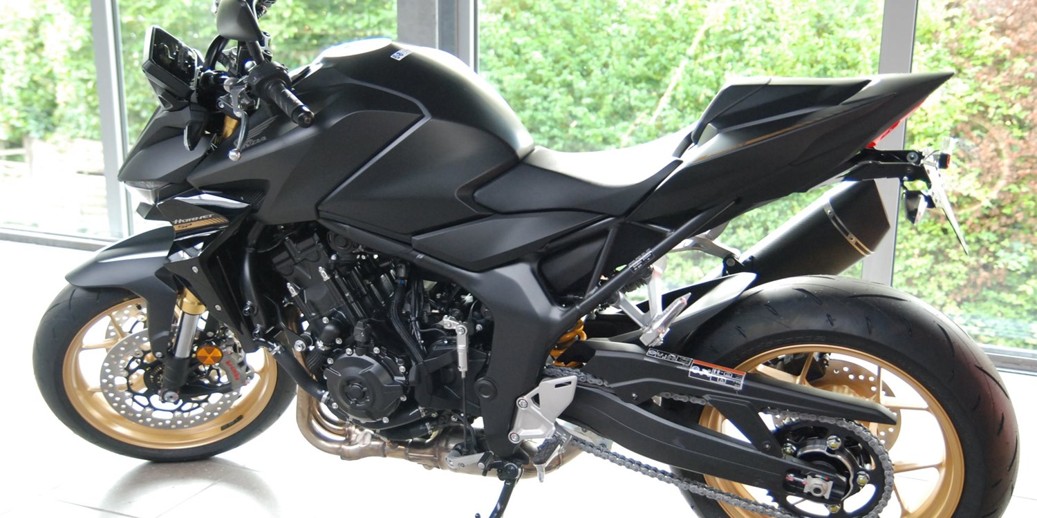 Es hat einen unglaublichen Motor. Und das Äußere einer waschechten Streetfighter-Maschine. Die CB1000 Hornet bietet jedoch auch ein einzigartiges Handling. Vom Großstadtdschungel zur kurvenreichen Landstraße. Der einteilige Stahl-Brückenrahmen verlagert aufgrund seiner Geometrie das Gewicht nach vorn auf das Vorderrad und erhöht die Torsionssteifigkeit um 70 %, was für einen agilen Kurveneingang und ein dynamisches Lenkverhalten sorgt. Außerdem ist ein Showa-Federbein montiert, das über Pro-Link für perfekte Federungskontrolle sorgt. Dazu kommt die Lenkpräzision der einstellbaren SHOWA SFF-BP Upside-Down-Gabel mit 41 mm Durchmesser. Die radial montierten Vielkolbenbremszangen von Nissin an der Vorderradbremse mit 310 mm großen, schwimmend gelagerten Bremsscheiben sorgen für eine starke Bremsleistung. Dank des breiten Lenkers und der Fahrposition verschmilzt du mit dem Motorrad.