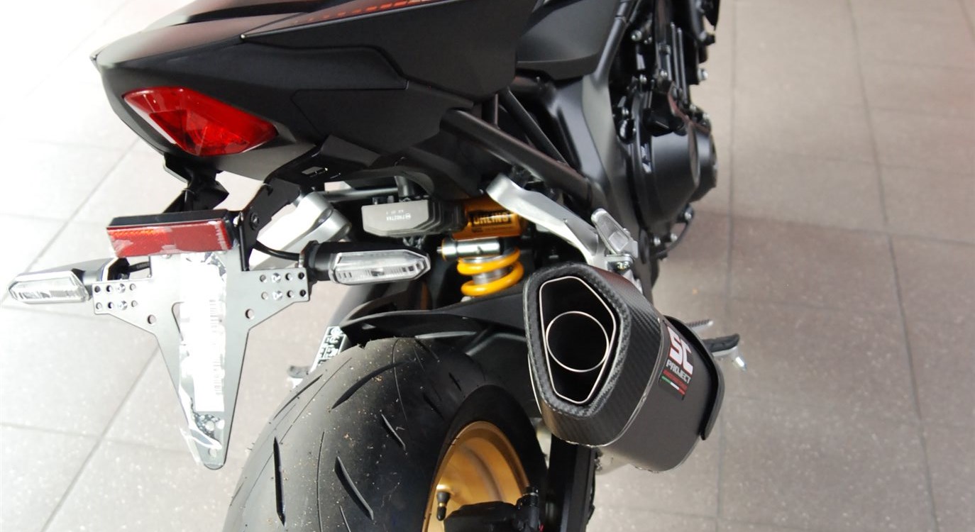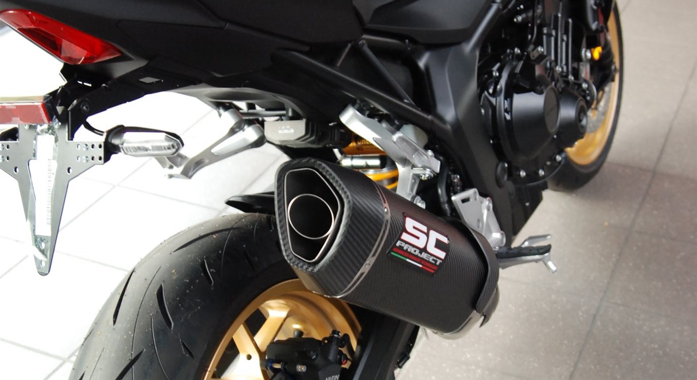 SC-Project Sportauspuff, Soziussitzbank Abdeckung und Kurzkennzeichen Halter.